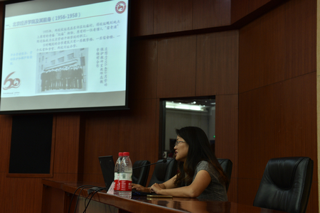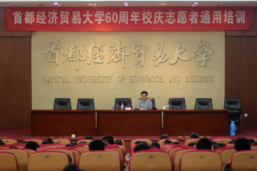 此次培训分为校情校史、服务礼仪、应急处理三个专题,每个专题共设两讲。5月18日下午,原校纪委书记、工会主席赵凤启主讲了第一讲;5月22日晚,校档案馆、校史馆馆长徐彦红主讲了第二讲。赵凤启围绕“铭记历史、缅怀先贤、传承文化、继往开来”的主题,分别介绍了首经贸前身北京经济学院和北京财贸学院的筹建发展情况以及两所学校合并后首经贸的发展历程。他如数家珍般地介绍了学校历史中的关键数据和重要人物,使同学们对学校历史有了清晰、完整的理解。徐彦红在校情校史讲解中还播放了几段为首经贸发展做出重大贡献的老前辈采访视频,令在场同学颇受鼓舞。