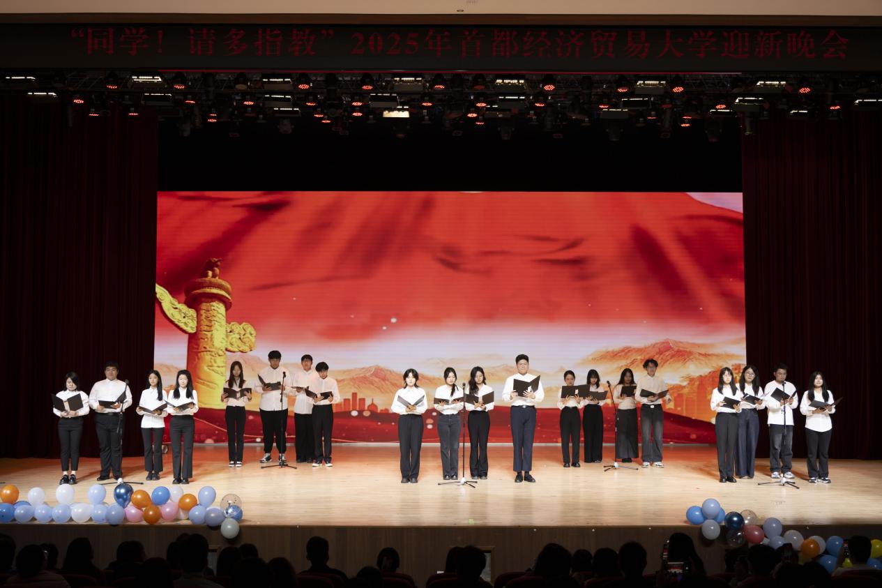 晚会在温馨与感动中圆满落幕。此次迎新晚会不仅是一场文艺盛宴,更丰富了校园文化活动,彰显了我校学子蓬勃的青春活力和闪耀的艺术才华。歌声与笑声在此交织,青春与梦想在此共鸣。愿所有2025级新生把从这场晚会中感受到的温暖与力量,转化为未来求学路上的动力,在首经贸这片广阔的天地里,勇敢追光,续写华章,开启属于自己的崭新旅程!